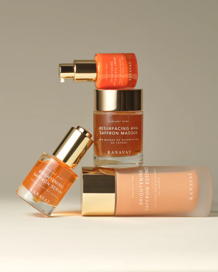 Our Brightening Saffron Essence is the prep layer in your Ritual to enhance the efficacy of our our Radiant Rani collection.